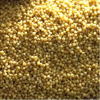 小米(Setaria italica var. germanica (Mill.) Schred. ),又稱(chēng)為粟,北方稱(chēng)谷子,谷子脫殼為小米,其粒小,直徑1 mm左右。小米是世界上古老的栽培農(nóng)作物之一,起源于中國(guó)黃河流域,是中國(guó)古代的主要糧食作物。粟生長(zhǎng)耐旱,品種繁多,俗稱(chēng)“粟有五彩”,有白、紅、黃、黑、橙、紫等各種顏色的小米,也有黏性小米。中國(guó)很早的酒也是用小米釀造的!