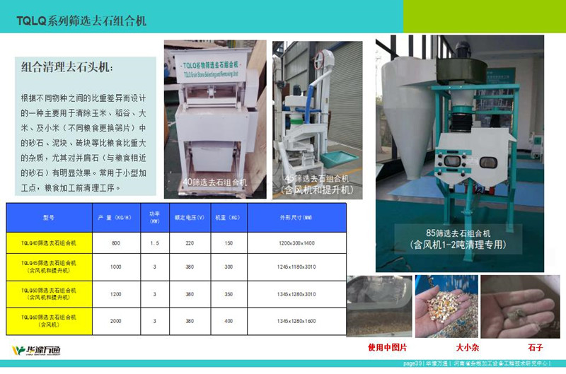 華豫萬(wàn)通生產(chǎn)的TQLS系列組合清理去石機(jī),該系列組合型清理去石機(jī)整合風(fēng)機(jī)、振動(dòng)篩、去石機(jī)為一體的糧食清理設(shè)備,常應(yīng)用于糧食加工中清理去除大中小雜、石頭以及輕雜。其中TQLS-45型清理去石機(jī)常應(yīng)用1噸下糧食清理,而TQLS-85組合清理去石機(jī),精工制作常應(yīng)用于30噸左右糧食加工生產(chǎn)線(xiàn)的前段清理工序。