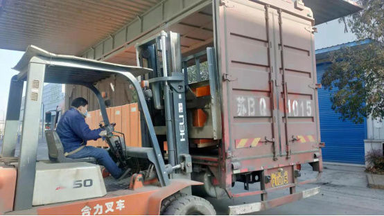 1月13日8點(diǎn)剛上班,一輛40 尺高柜貨車停放在了華豫萬通的生產(chǎn)區(qū)。出口贊比亞代理商的50臺玉米脫皮機(jī),準(zhǔn)備裝柜發(fā)貨。
