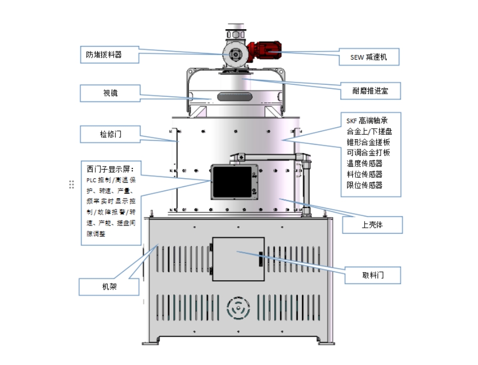 - 智能進料防堵裝置:采用新型防堵結(jié)構(gòu)設計,保證物料暢通不堵塞。